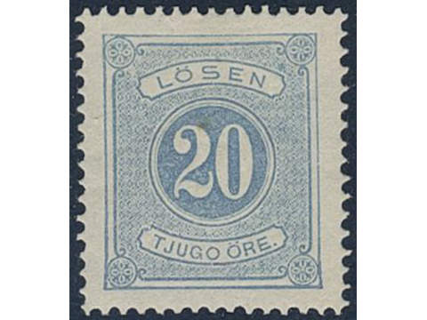 Sweden. Postage due Facit L6d ★, 20 öre blue-ultramarine, perf 14. Superb. Opinion (shade) by O.P. SEK 1300