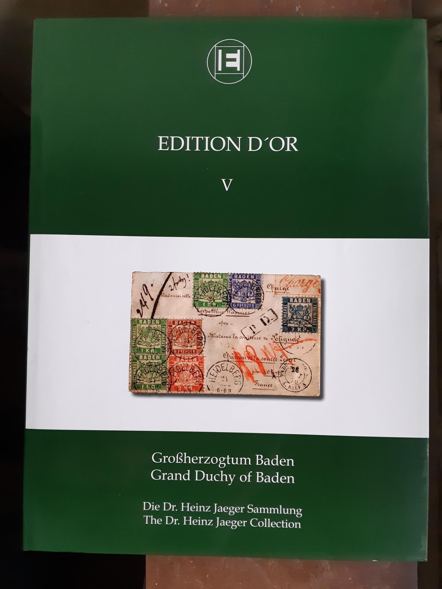 Literature, Baden. EDITION D'OR, Vol. V: 'Grand Duchy of Baden – The Dr. Heinz Jaeger Collection', Heinrich Köhler, 2007. The Large Gold awarded exhibit depicted in its entirety, hardcover, with dust jacket, 227 pp., introduction bilingual English/German. Sold out at publisher. Used.