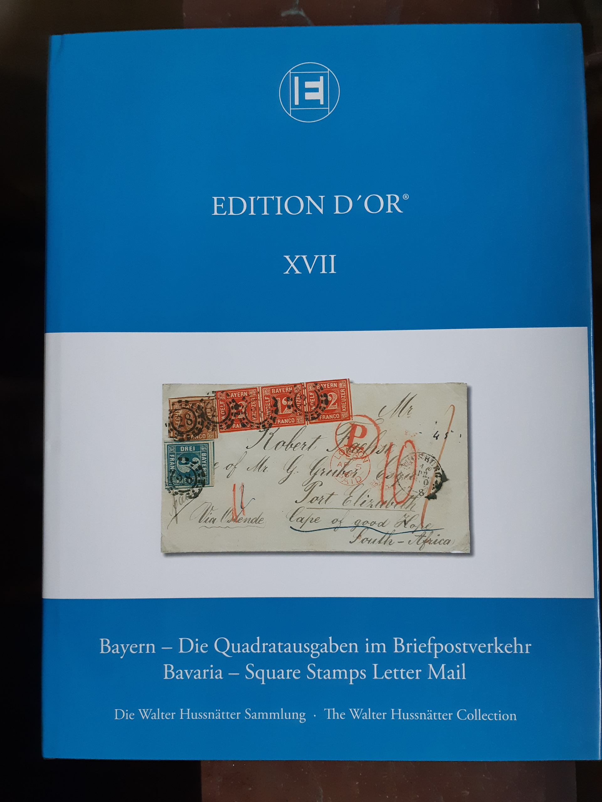 Literature, Bavaria. EDITION D'OR, Vol. XVII: 'Bavaria – Square Stamps Letter Mail – The Walter Hussnätter Collection', Heinrich Köhler, 2009. The Large Gold awarded exhibit depicted in its entirety, hardcover, with dust jacket, 164 pp., introduction bilingual English/German. Sold out at publisher. Used.