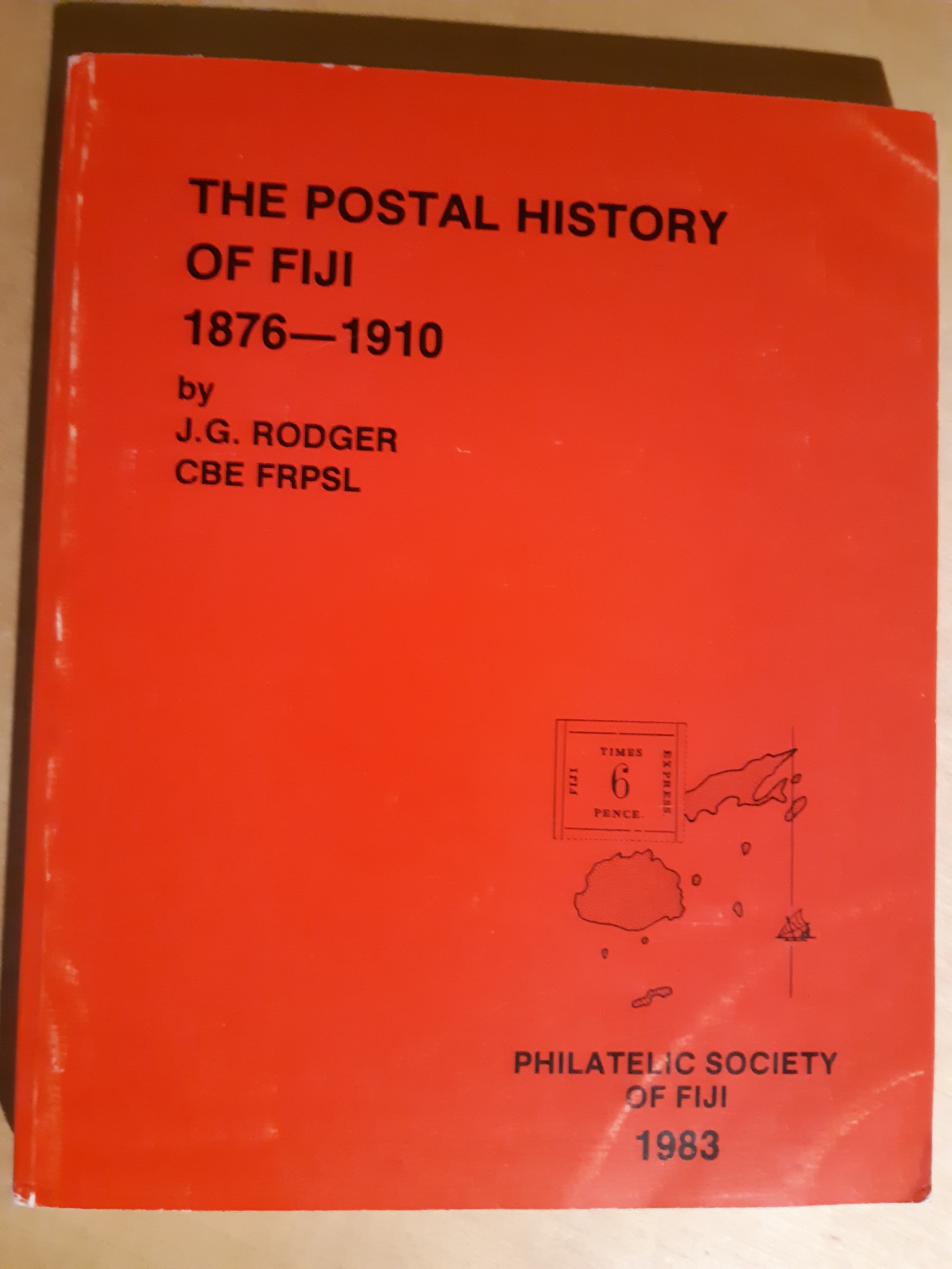 Literature. Rodger, J.G., 'The Postal History of Fiji 1876–1910', Philatelic Society of Fiji 1983, vii + 230 pages + maps + plates, limited edition, No. 69 of 500 copies. Used.