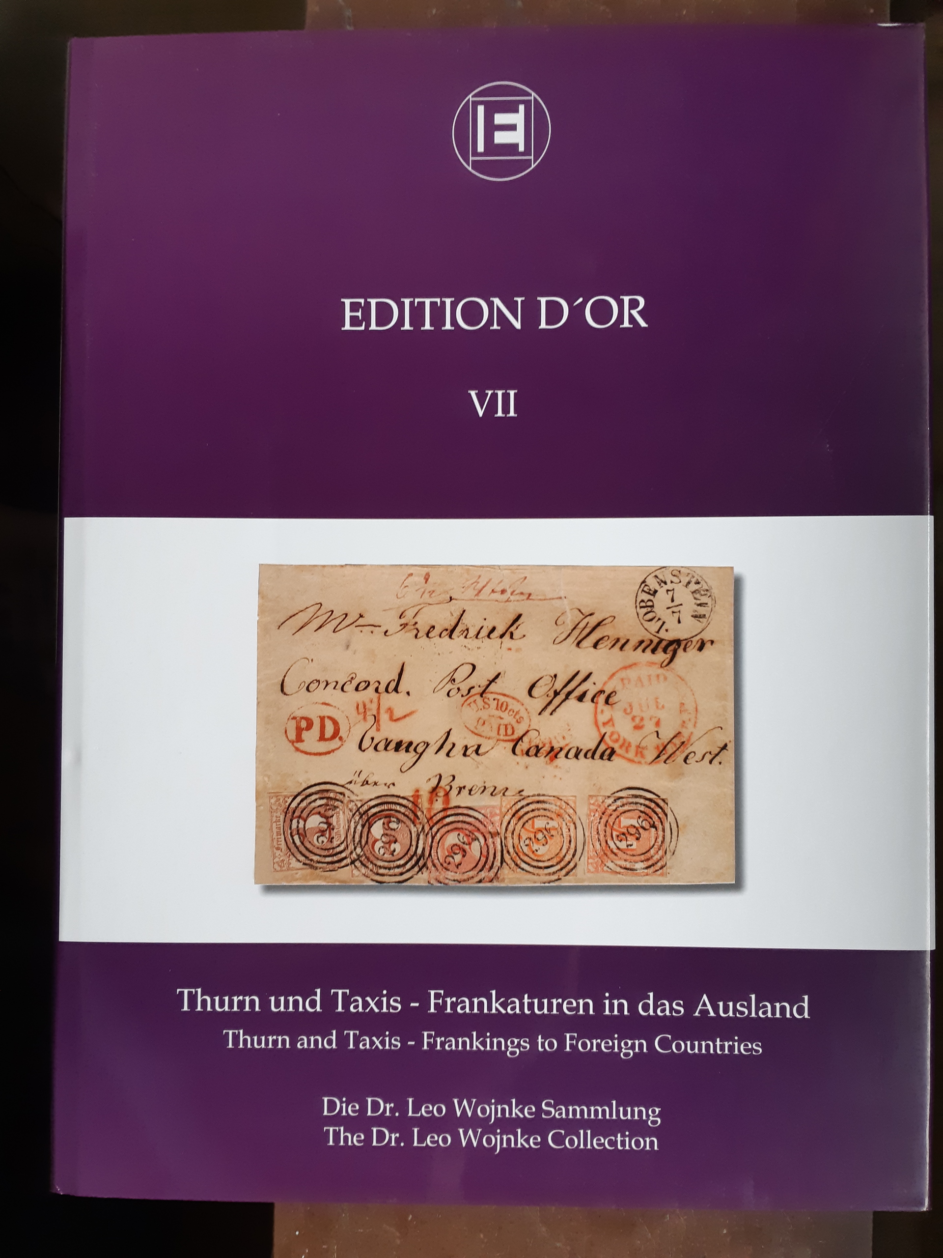 Literature, Thurn und Taxis. EDITION D'OR, Vol. VII: 'Thurn and Taxis - Frankings to Foreign Countries – The Dr. Leo Wojnke Collection', Heinrich Köhler, 2007. The Large Gold awarded exhibit depicted in its entirety, hardcover, with dust jacket, 128 pp., introduction bilingual English/German. Sold out at publisher. Used.