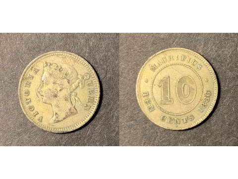 Mauritius Queen Victoria (1837-1901) 10 cents 1886, VF Lagerantal: I lager 450 SEK Lägg i varukorgen Beskrivning Kvalitet: VFKatalog: KM 10.1Valör: 10 cents Ex. Mark Freehill.