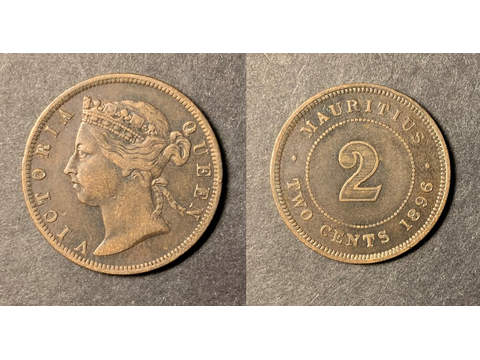 Mauritius Queen Victoria (1837-1901) 2 cents 1896, VF-XF Lagerantal: I lager 700 SEK Lägg i varukorgen Beskrivning Kvalitet: VF-XFKatalog: KM 8Valör: 2 cents Ex. Mark Freehill.