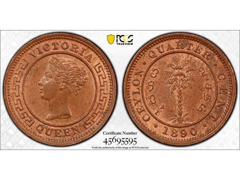 Ceylon Queen Victoria (1837-1901) 1/4 cent 1890, UNC, PCGS MS64RB
