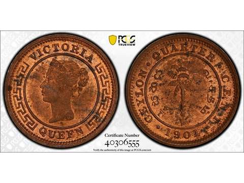Ceylon Queen Victoria (1837-1901) 1/4 cent 1901, UNC, PCGS MS63 RB