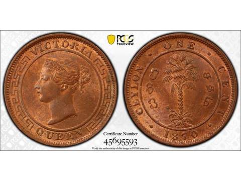 Ceylon Queen Victoria (1837-1901) 1 cent 1870, UNC, PCGS MS64RB