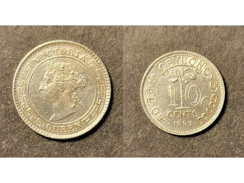 Ceylon Queen Victoria (1837-1901) 10 cents 1893, AU/UNC lätt rengjord