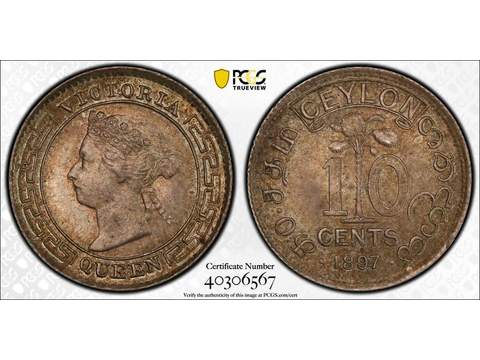 Ceylon Queen Victoria (1837-1901) 10 cents 1897, UNC, PCGS MS64