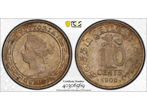 Ceylon Queen Victoria (1837-1901) 10 cents 1900, UNC, PCGS MS64 Lagerantal: I lager 1 800 SEK Lägg i varukorgen Beskrivning Kvalitet: UNCGradering: MS64Katalog: KM 94Valör: 10 cents Ex. Mark Freehill.Tied finest graded at PCGS.