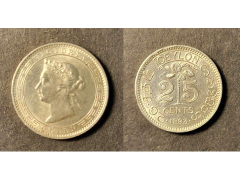 Ceylon Queen Victoria (1837-1901) 25 cents 1893, AU/UNC