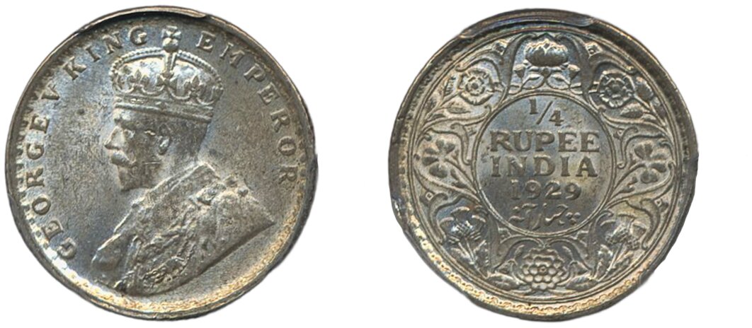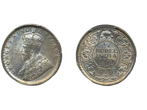 Coins, India. George V (1910-1936), KM 524, ¼ rupee 1929 C. Graded by PCGS as MS64. XF-UNC.