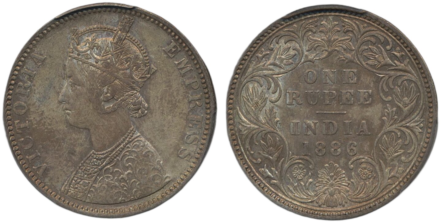Coins, India. Queen Victoria (1837-1901), KM 492, 1 rupee 1886. Bombay mint. Graded by …