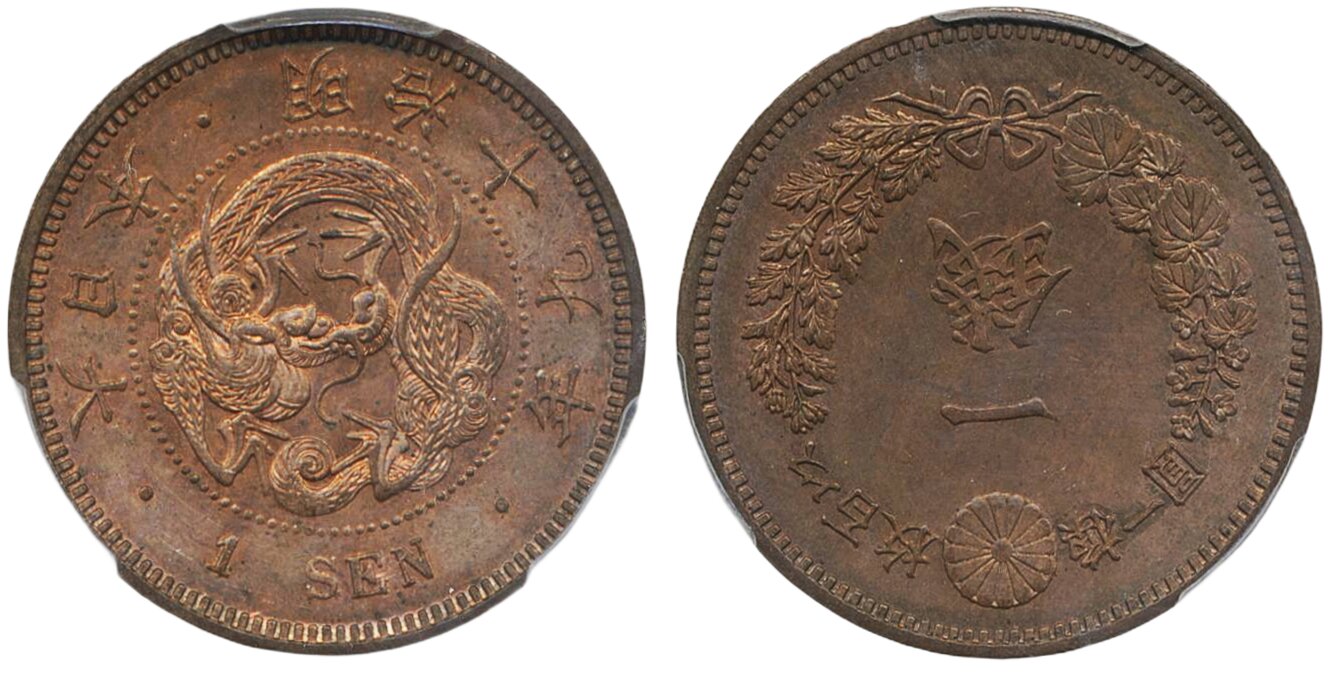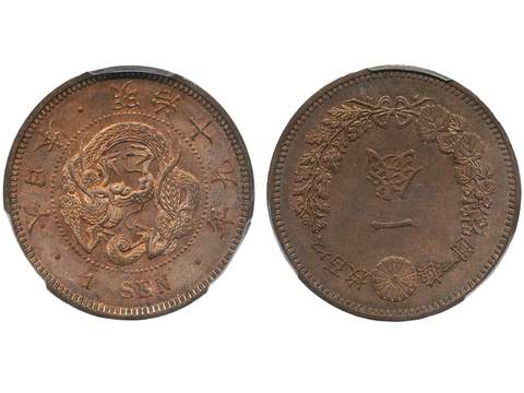 Coins, Japan. Mutsuhito (1867-1912), KM Y-17.2, 1 sen Meiji 19 (1886). Graded by PCGS as …