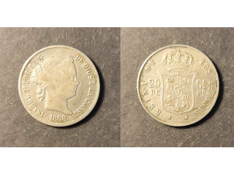 Philippines Isabel II (1833-1868) 20 centimos 1868, VF