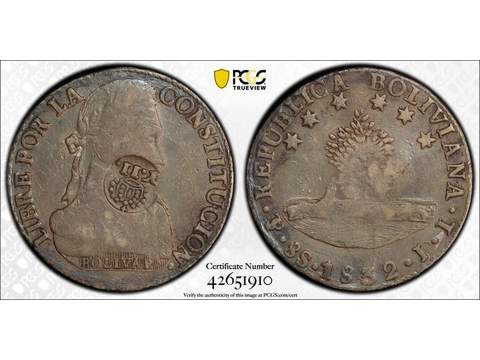 Philippines Y II countermark on Bolivia 8 reales 1832, PCGS VF tooled