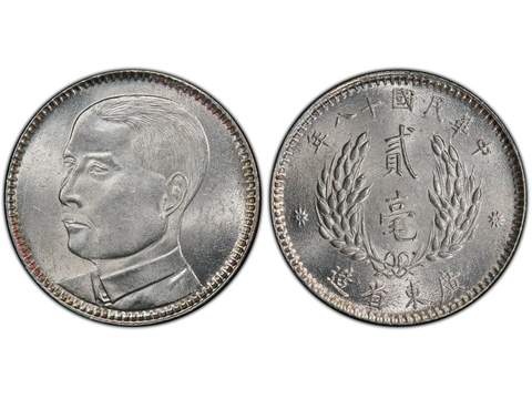 Kina Kwangtung 20 cents 1929, XF-UNC, PCGS MS62