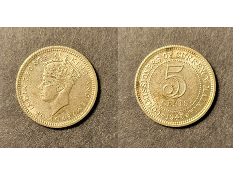 Malayiska Federationen Malaya George VI (1939-1952) 5 cents 1945, UNC