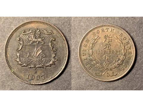 Brittiska Nordborneo 1/2 cent 1907 H, AU