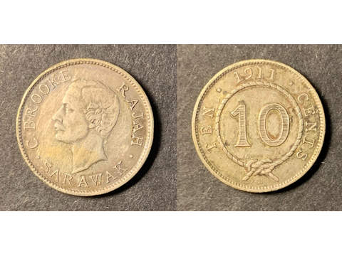 Sarawak Rajah Brooke 10 cents 1911 H, XF