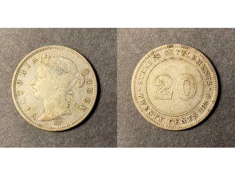 Straits Settlements Queen Victoria (1837-1901) 20 cents 1890 H, VF-XF