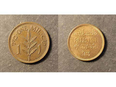 Palestine 1 mil 1927, UNC med rör lyster