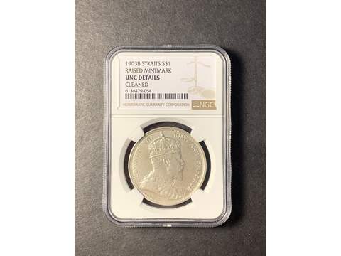 Straits Settlements Edward VII (1902-1910) 1 dollar 1903 B raised mint mark XF-UNC, NGC UNC cleaned