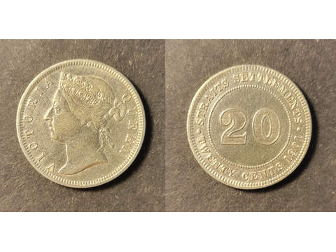 Straits Settlements Queen Victoria (1837-1901) 20 cents 1901, AU lätt rengjord