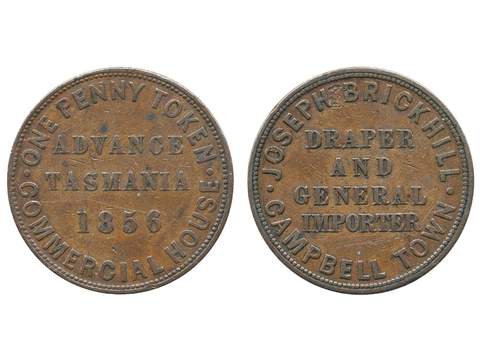 Coins, Australia, Tasmania. KM Tn-24, 1 penny 1856. Brickhill. F-VF.