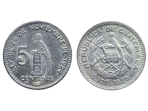 Coins, Guatemala. KM 238.1, 5 centavos 1925. Key date with low mintage. XF-UNC.