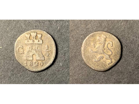 Guatemala Ferdinand VII (1808-1821) 1/4 real 1820, VF Lagerantal: I lager 900 SEK Lägg i varukorgen Beskrivning Kvalitet: VFKatalog: KM 72Valör: 1/4 real Det finns ingen beskrivning för denna produkt ännu.