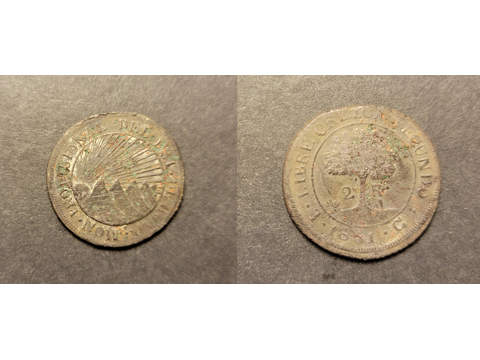 Honduras 2 reales 1851 TG, VF, korrosion, Ex. Richard Stuart MYCKET SÄLLSYNT Lagerantal: I lager 16 000 SEK Lägg i varukorgen Beskrivning Kvalitet: VFKatalog: KM 19cValör: 2 reales Ungefär en handfull kända av detta mycket sällsynta årtal.