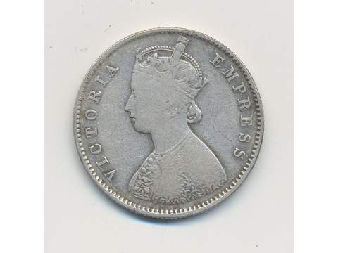 Coins, India. KM 491, 1/2 rupee 1886. 5,72 g. F-VF.