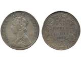 Coins, India. Queen Victoria (1837-1901), KM 492, 1 rupee 1885. Bombay mint. Graded by PCGS as AU55. SW 6.85. XF.
