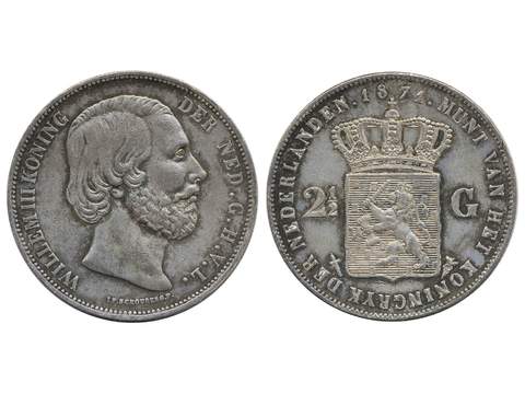 Coins, Netherlands. William III, KM 82, 2 1/2 gulden 1871. Lustrous example with beautiful toning. Scho. 597. XF.