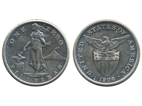 Coins, Philippines. KM 172, 1 peso 1908. Double mint mark S over S. Lightly cleaned. …