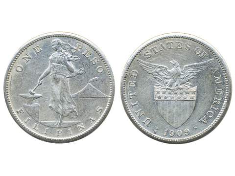 Coins, Philippines. KM 172, 1 peso 1909. Double mint mark S. Lightly cleaned. VF-XF.