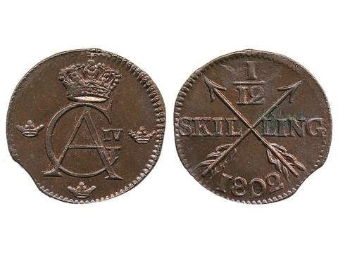 Coins, Sweden. Gustav IV Adolf, SM 63, 1/12 skilling 1802. 2.11 g. Insignificant …