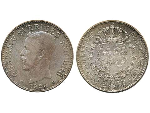 Coins, Sweden. Gustav V, SMF 16, 2 kronor 1929. 01.