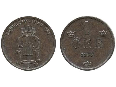 Coins, Sweden. Oskar II, MIS I.4, 1 öre 1877. 1+/01.