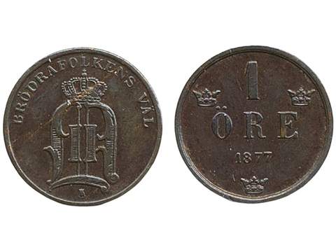 Coins, Sweden. Oskar II, MIS II.1a, 1 öre 1877. 01.