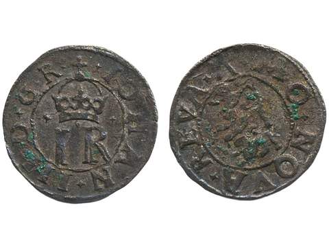 Coins, Swedish possessions, Reval. Johan III, SB 43b, 1 solidus ND. 1.00 g. Attractive example with lustre, some verdigris. SMB 184. 1+/01.