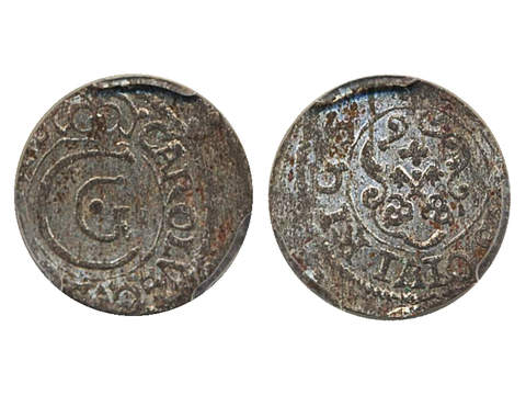 Coins, Swedish possessions, Riga. Karl X Gustav, SB 19, 1 solidus 1657. Graded by PCGS …