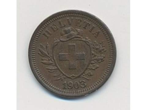 Coins, Switzerland. KM 3, 2, 1 rappen 1903. 1,49 g. XF.