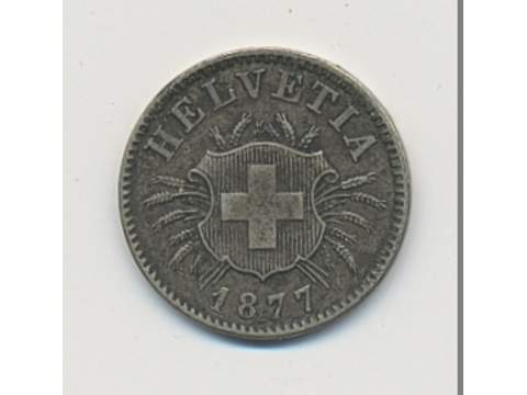 Coins, Switzerland. KM 5, 5 rappen 1877. 1,72 g. F-VF.