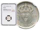 Coins, Sweden. Gustav V, MIS I.13, 25 öre 1932. Graded by NGC as MS62. SM 114. 01/0.