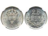 Coins, Sweden. Gustav V, MIS I.15, 25 öre 1934. Graded by NGC as MS64. SM 116. 01/0.