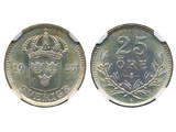 Coins, Sweden. Gustav V, MIS I.17a, 25 öre 1937. Graded by NGC as MS62. SM 118a. 01/0.