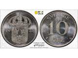 Coins, Sweden. Gustav V, MIS I.20a, 10 öre 1938. Graded by PCGS as MS66. Only one …