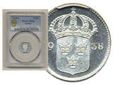 Coins, Sweden. Gustav V, MIS I.20a, 10 öre 1938. Graded by PCGS as MS66. Only one …