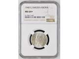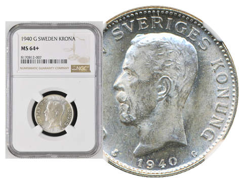 Coins, Sweden. Gustav V, MIS I.26a, 1 krona 1940. Graded by NGC as MS64+. SM 59a. 01/0.